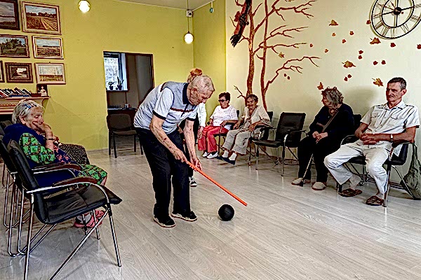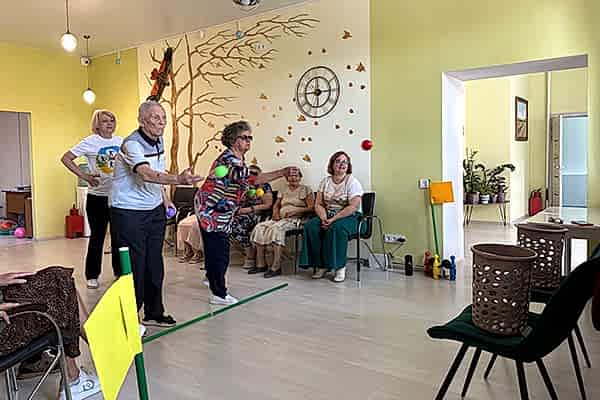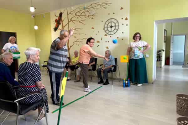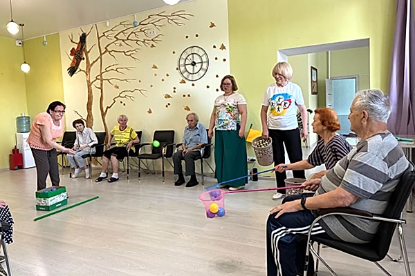 Каждое утро традиционно начиналось с оздоровительной гимнастики. Затем, Pin Up на две команды, получатели социальных услуг соревновались в выполнении эстафетных упражнений: участники с азартом сбивали кегли, проверяли свою ловкость и находчивость, активно отвечали на вопросы спортивной викторины. В финале каждый получил свой заслуженный приз.